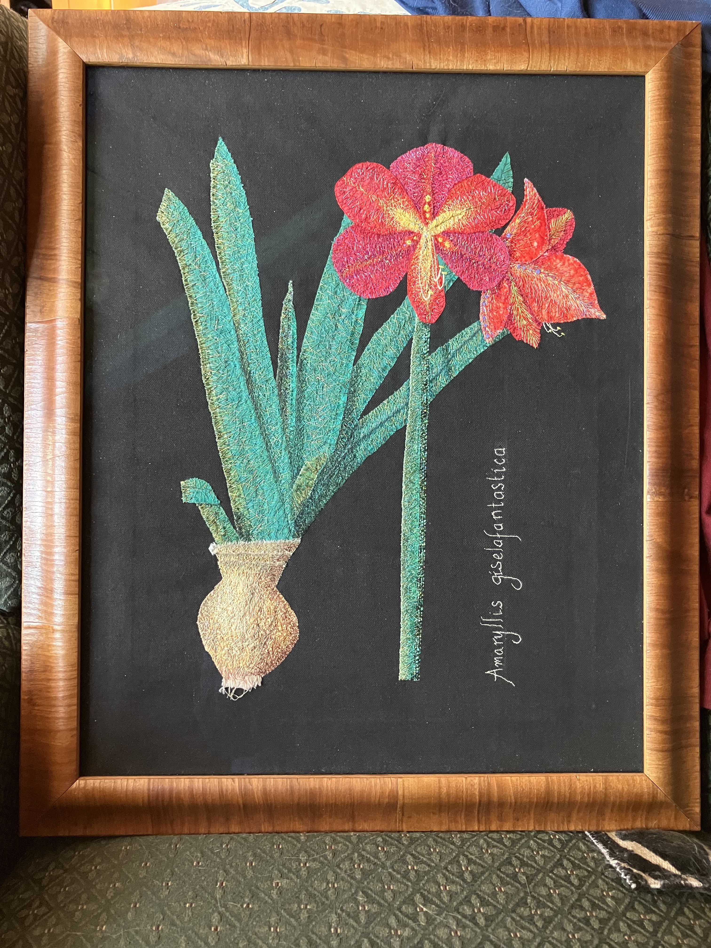 My textile arts use tiny scraps of fabric and thousands of hand-made stitches to “paint” pictures. My past works have included both botanical renditions as well as abstracts, and might also include other media such as paint, beads, or found objects. I am taking on this project in support of the Community Asylum Seekers Project.